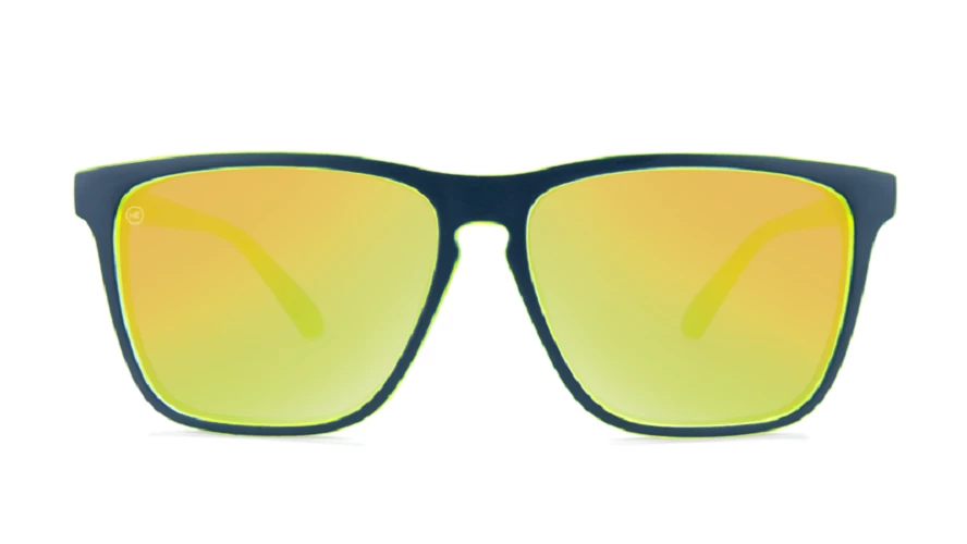 This particular pair feature the eye-catching colour combination of matte navy and neon yellow geode frames with yellow lenses. Designed to complement medium to larger face shapes, these sunglasses feature clean-cut, rectangular lenses and our “K” logo embedded on the arms.