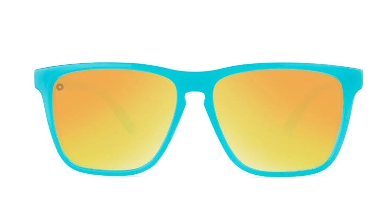These new Fast Lanes Sport feature blue embedded rubber nose pads to reduce slip, slide, and bounce. An athlete-focused design, these sunglasses also incorporate embedded “K” logos on the outside of each arm of the pool blue frame and accommodate large and medium face shapes. Whether your sport of choice takes place on a court, a field, or a sidewalk, our shades are ready for the job. FDA approved impact resistant yellow sunset lenses with full UV400 protection make Fast Lanes Sport the ideal choice.