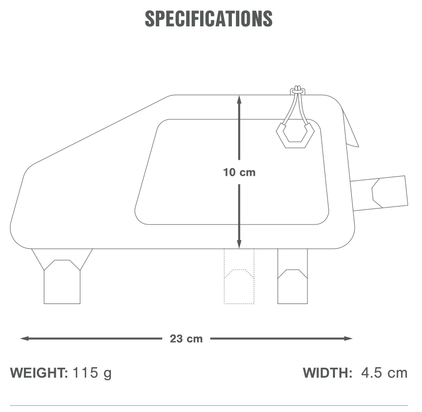 A streamlined and secure space to store frequently-used items, whatever the terrain. The Backcountry Top Tube Pack is a convenient space to store frequently used items, whether navigating a challenging trail or on a daily commute. The mountain bike top tube bag is ideal for stashing snacks, light valuables and electronic devices. It securely attaches to the top tube with Hypalon-reinforced velcro straps that minimise abrasion on the frame. A one-finger zipper puller allows easy access on the move, while the full-length fully waterproof zipper safeguards contents against water and dirt when closed. The top tube bag is also padded with closed cell foam to safeguard items against impact and features an internal pocket for organisation and a battery lead port for charging electronic devices on the go.