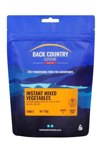 Just add boiling water for a mix of precooked, peas, corn and carrot. Gluten free.