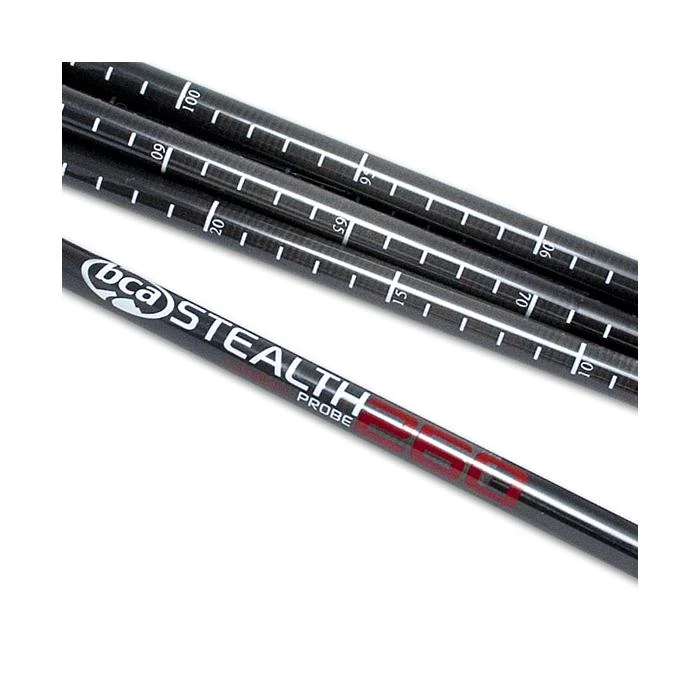 Stealth Quick-Lock probes feature the easiest and fastest assembly on the market, with no loose cable to cause hangups. The top segment stealthfully nests inside the next probe section, reducing the number of segments and size of the probe bundle when disassembled in your pack. Equipped with depth markings for measuring snowpack and/or victim depth to determine the dimensions of the excavation area before shoveling. Stealth probes are built to last and save valuable seconds during an avalanche rescue when time matters.