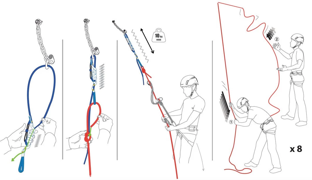 Detachable abseil system. It allows abseiling when only a single length of rope is available. It can be used with all rope diameters from 7.3mm.