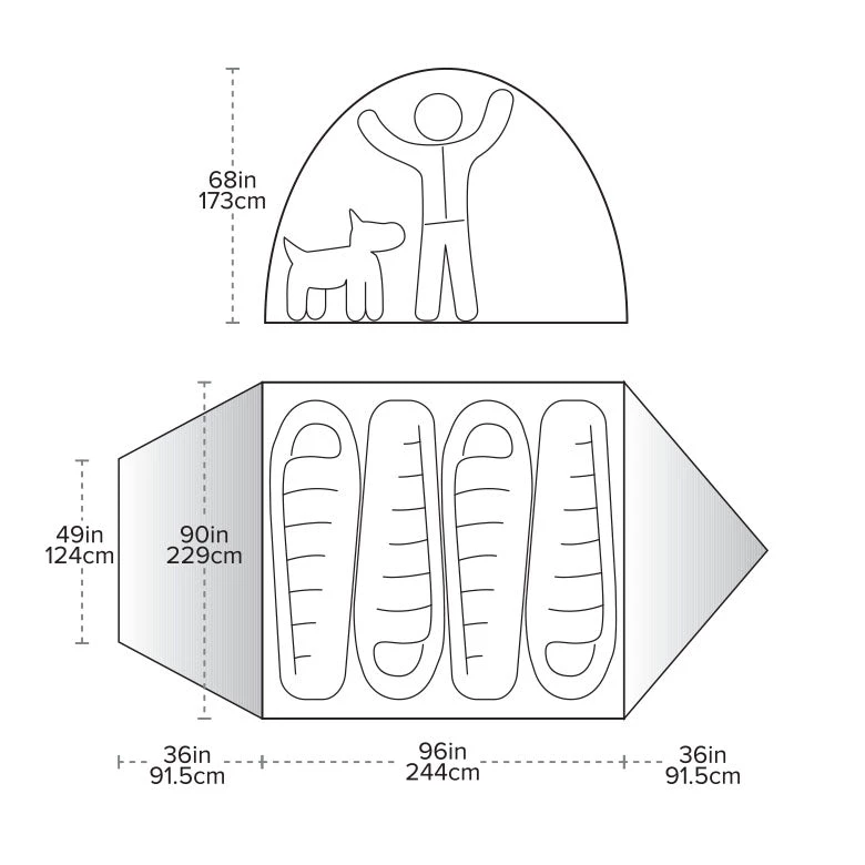 Lightweight aluminum pole system with press fit connectors 8 interior pockets and media corner on lower pocket 6″ tall interior mesh corner pockets on tent floor
