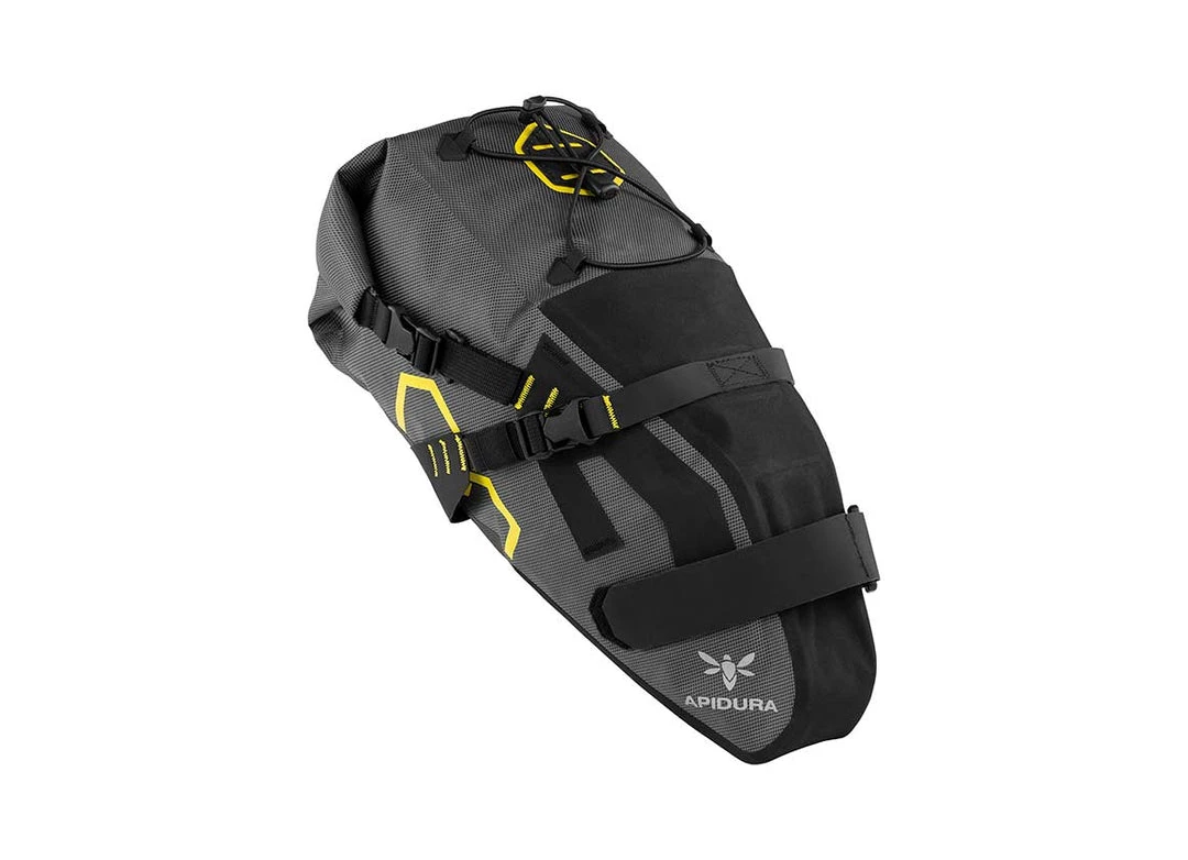 The Expedition Saddle Pack is waterproof, lightweight, and provides a spacious compartment under the saddle, eliminating the need for a rear rack. It’s designed to hold clothes and equipment on long distance rides. Built from a lightweight laminate developed specifically for Apidura, the saddle bag is highly resistant to abrasions and tears. The seams have been welded together, creating a waterproof seal that ensures contents always stay dry, even in sustained rain. A three-point attachment system with Hypalon-reinforced velcro straps allows the saddle bag to hug the seat post, increasing stability and cutting down on lateral movement. Additional Hypalon on the bag’s body keeps frames in good condition. The Expedition Saddle Pack is available in three sizes for adventures long, short, and in-between. Additionally, the roll-down compression and closure system means the bag’s volume can be tailored precisely to fit a range of packing needs.