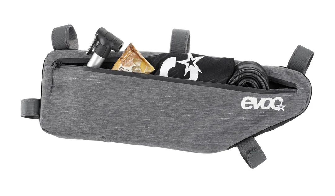 This convenient frame pack for the top tube offers extra storage for short adventures. Easy to attach securely onto various frame types, it has space to transport accessories like a rain jacket, pump and inner tube, all without scratching the frame.