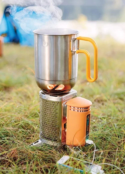 Turn fire into electricity with BioLites award-winning wood stove. Patented thermoelectric combustion technology creates a vortex of smokeless flames for a portable campfire that can cook your meals and charge your gear. Featuring an updated 100 lumen FlexLight with ChromaReal LED technology, cook with confidence at night thanks to accurate colour rendering.