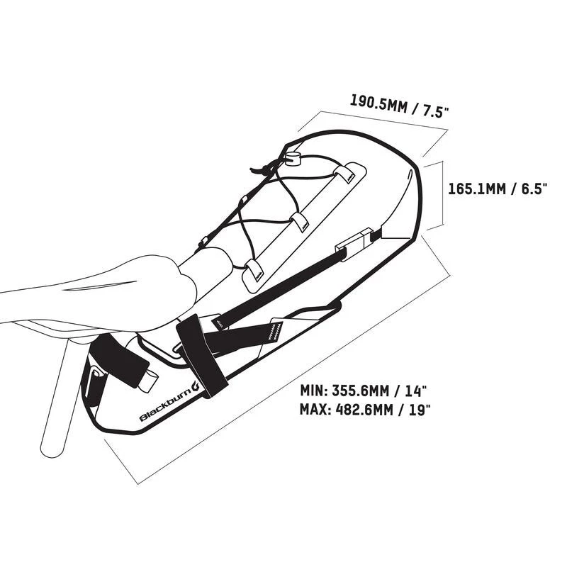 We developed our Outpost Elite Universal Seat Pack to work with dropper or standard seatposts, carry a bevy of cargo, and be stable enough to not swing around while it does. Designed as a two-part system: Part 1 is a T6061 alloy wing that affixes to your saddle and works with a standard or dropper post. Part 2 is a removable and waterproof dry bag. The bag has a scuba-style air-bleed valve to assist with compression while off the bike. The wing stays on the bike; the bag comes off and allows you to pack, compress, and go ride in the snap of a few buckles.