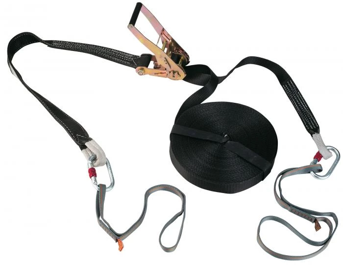 •Equipped with steel tensioning device, two polyamide anchor loops and two steel connectors