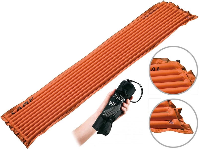 The Essential Light Mat is our lightest, most compact mat for hikers and climbers who need to cut space and weight everywhere possible. Because there is no foam, it rolls down to less than 2% of its inflated size and the 100% polyamide exterior allows it to be both strong and hyperlight at the same time. Two valves (one plastic, one brass) speed up inflation and deflation.
