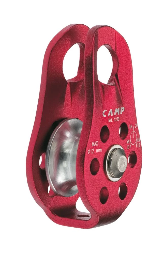 The fixed side plates make this an excellent pulley for quickly rigging a hauling system using an ascender. Clip a locking oval carabiner into the two pulley holes, then clip the carabiner to top of an ascender. Attach this rig to an anchor point that can rotate (such as a sling) using a locking carabiner clipped to the oval carabiner (between the side plates).
