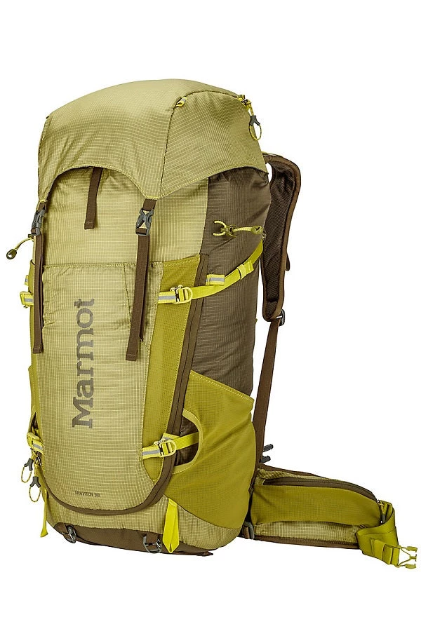 The Graviton is a traditional top loader with an extra sleeve and hanging clip for your hydration reservoir. There are two attachments for trekking poles or ice tools. Marmot’s pocket configuration for this pack includes a large top lid for maps and essentials, an internal mesh pocket for valuables like keys and waist belt pockets for energy gels and snacks.