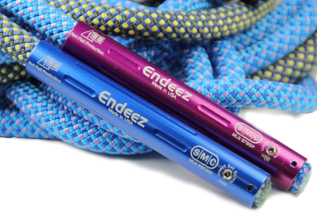 The Endeez rope end-icator was designed to aid climbers with a quick physical means of identifying their rope ends as they are rappelling, belaying, climbing or handling rope.