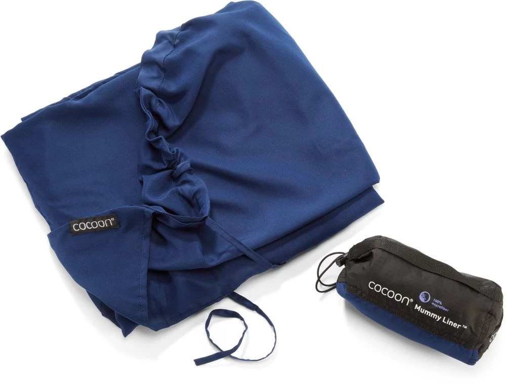 Cocoon MummyLiners are specially designed to fit any tapered mummy sleeping bag. They feature a drawstring hood, a boxed foot-end and are double stiched for durability. On a hot night, your MummyLiner might be all you need.
