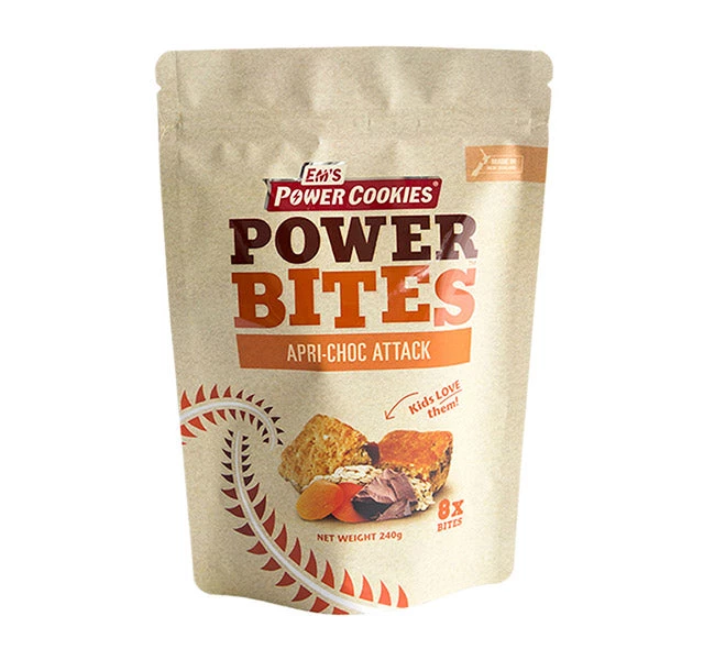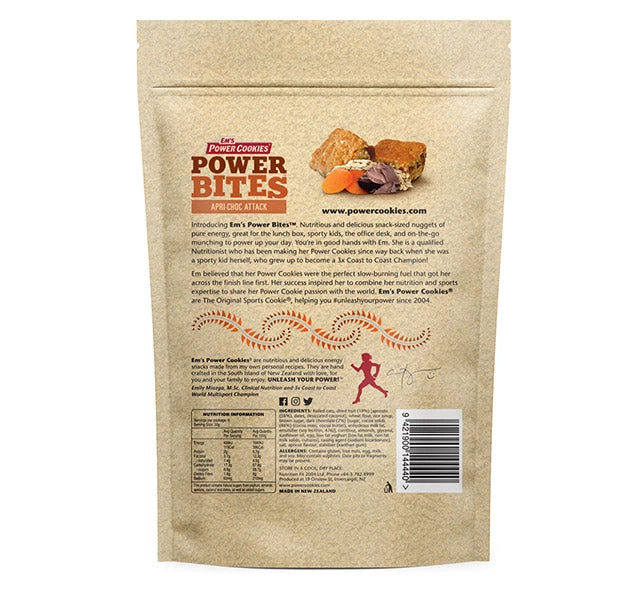 Power up your Day! Our Multipacks of Power Bites are nutritious and delicious snack-sized nuggets of pure energy that lasts. 8x Power Bites per pouch. Great for the lunch box, sporty kids, the office desk, and on-the-go munching. Our Apri-Choc Attack is packed with zesty apricots, real dark chocolate, crushed almonds and dates. It is lower in fat, and has a beautiful flavour profile guaranteed to satisfy. Who doesn’t love real dark chocolate combined with apricots? Mmmmm.