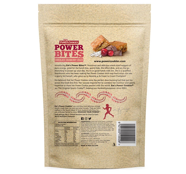 Power up your Day! Our Multipacks of Power Bites are nutritious and delicious snack-sized nuggets of pure energy that lasts. 8x Power Bites per pouch. Great for the lunch box, sporty kids, the office desk, and on-the-go munching. Our Chocolate Cranberry Craze is one of our top sellers, made with GF* ingredients, these Bites are like fudge and fruitcake all rolled into one nutritious and delicious treat. Try it with some Pic’s Peanut Butter. We promise it’s a match made in heaven. It is definitely the best GF energy snack on the market.