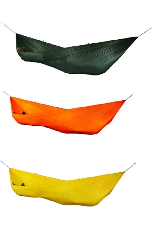 The same size as our other hammocks and just as comfy this hammock is made from the lightest materials we could possibly source. This is the lightest, most compact hammock available and easily packs into a jacket pocket!