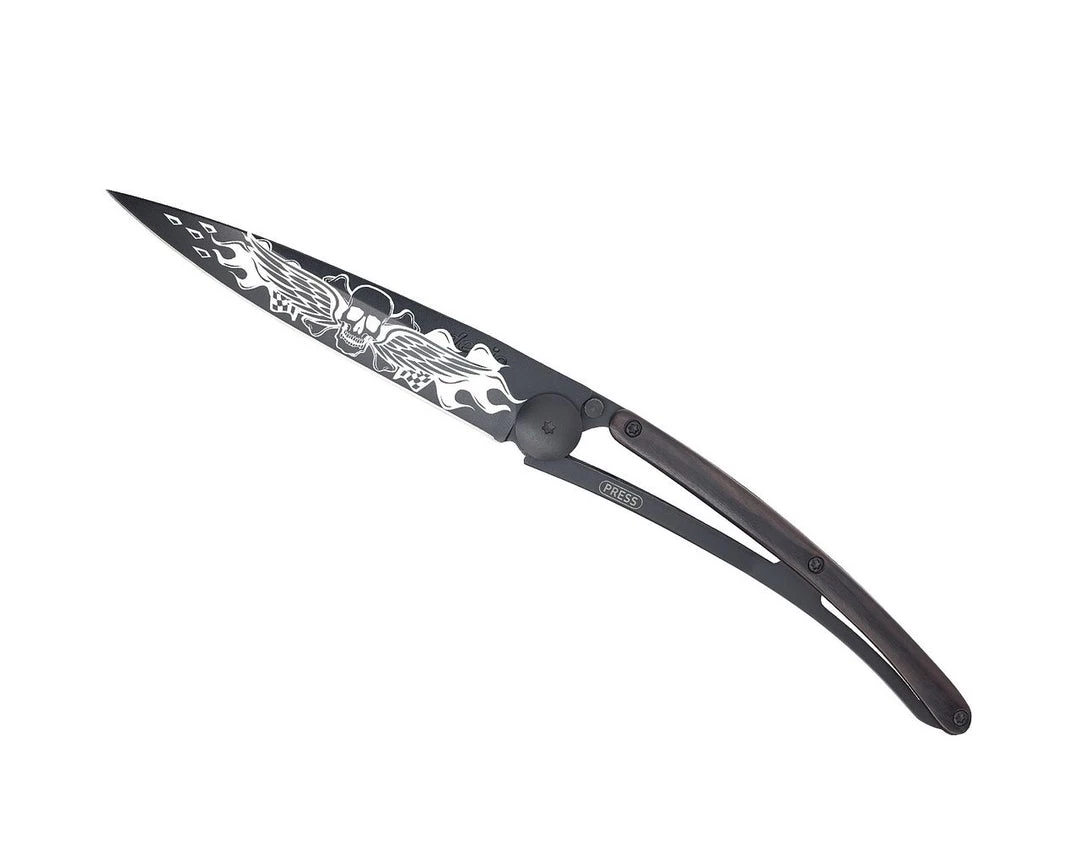 Do like Deejo: hit the road and win the race. Ebony wood, visually appreciated for its deep blacks, possesses the particularity of being virtually insensitive to humidity. This species of wood is thus the densest, the most resistant, and the most precious, ideal for this magnificent piece of cutlery.