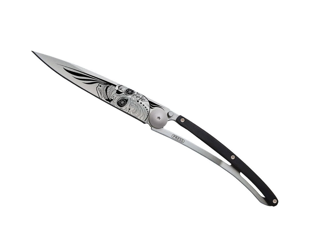 Would you dare this fascinating pattern every detail of which merits being observed under a microscope? Does Deejo make the cut? Up to you to decide! The ebony wood plate complements the elegant shaping of this thin blade, made popular by its exceptional cutting capacities and feather-light weight. Ebony wood, visually appreciated for its deep blacks, possesses the particularity of being virtually insensitive to humidity. This species of wood is thus the densest, the most resistant, and the most precious, ideal for this magnificent piece of cutlery.