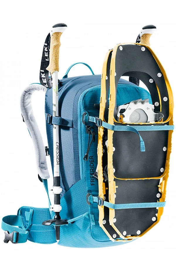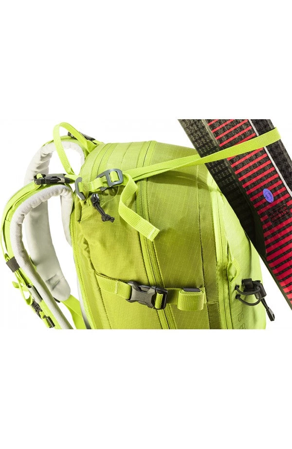 Two dedicated straps that attach to the gear loops on the pack allow you to affix skis, a snowboard or snowshoes to the pack in no time at all – skis diagonally across the