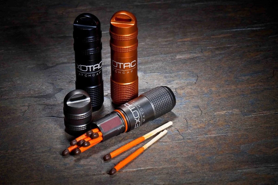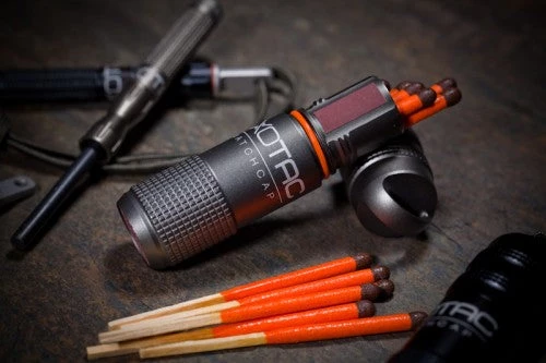 The MATCHCAPâ„¢ is a nearly indestructible waterproof match case for storing matches and other fire starting material. By integrating the red-phosphorus striker into the threaded area of the capsule, Exotac created an innovative solution for having to pack separate match strikers. To ensure their match case was going to be the best out there, they added a concealed o-ring, durable square threads, a bottom strike-anywhere striker, and a high-end aesthetic to bring it all together.