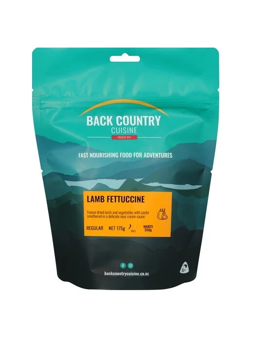 Freeze dried lamb and vegetables with pasta smothered in a delicate sour cream sauce.
