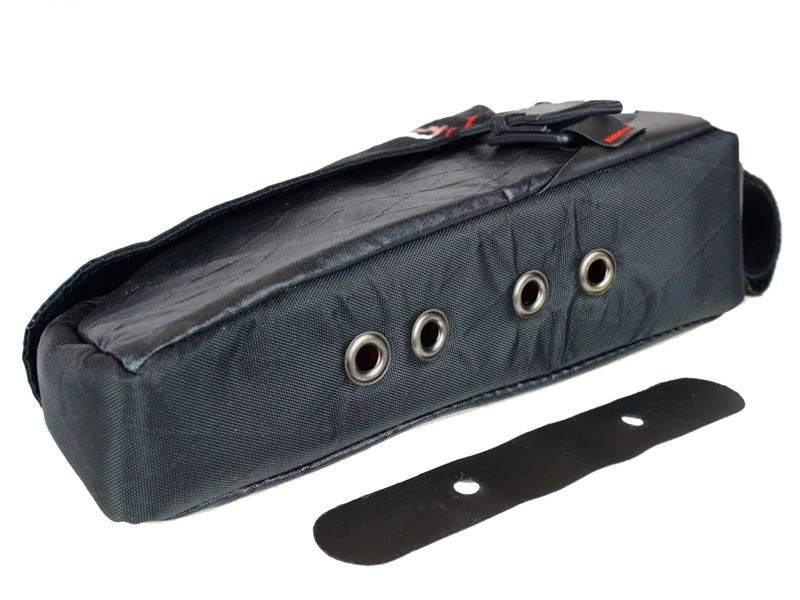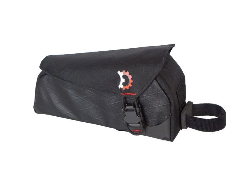 The Mag-Tankâ„¢ takes a new twist on top tube bags. Instead of a zippered opening, access to the bag is by a smartly contoured top flap held in place by a magnetic buckle with mechanical engagement (read – the magnet aids in closure, while load is placed on a connection). It will not unintentionally open and spill your gummy bears when you end up in the trees with your bike upside down like a conventional magnetic closure would. You can easily open the bag one handed by pulling outward on the cord loop and you have access to the whole top of the bag. To close, just flick the flap down and the buckle self-engages!