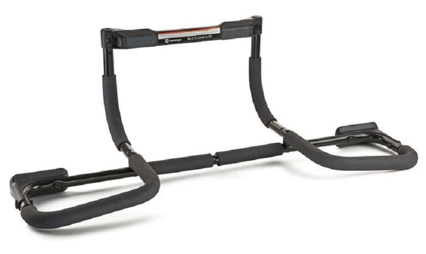 The Harbinger® Multi-Gym Elite is a portable gym system that can be used as doorway pullup bars as well as for sit-ups, pushups and dips.