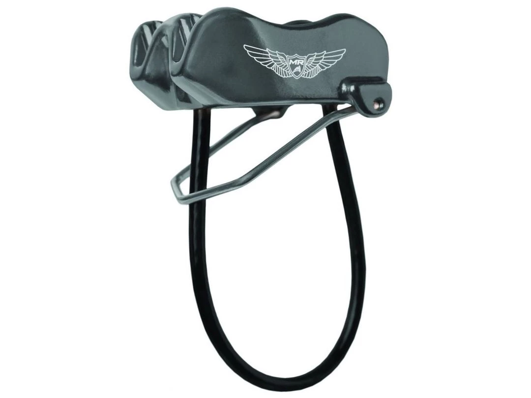 The spring on the Wingman belay device prevents the carabiner from locking when feeding the rope out. When loaded and the brake is engaged, the spring collapses and enables the device to lock.