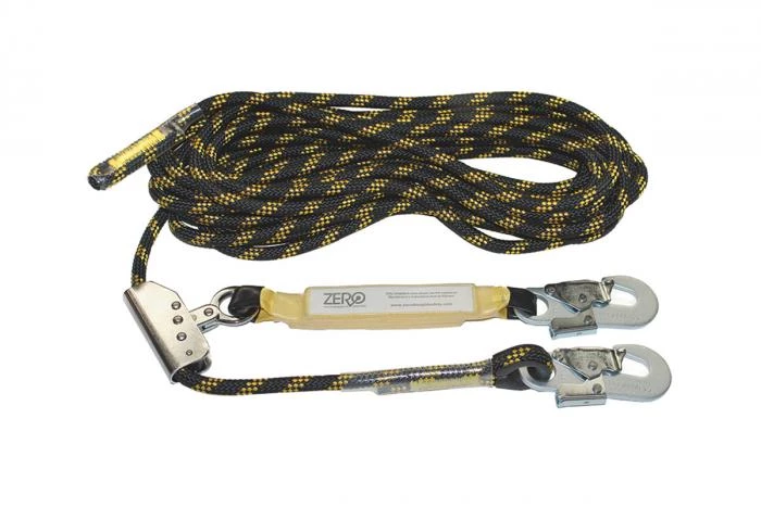Complete Rope line with a rope adjuster, shock absorber and a snap hook. Easy to adjust as you work down the rope, travels freely up the rope. Excellent for roof work, fix to secure anchor such as large tree, post, beam on the opposite side to area being worked on. The shock absorber gives peace of mind in case of a fall that the forces back on the body will not exceed 6kN.