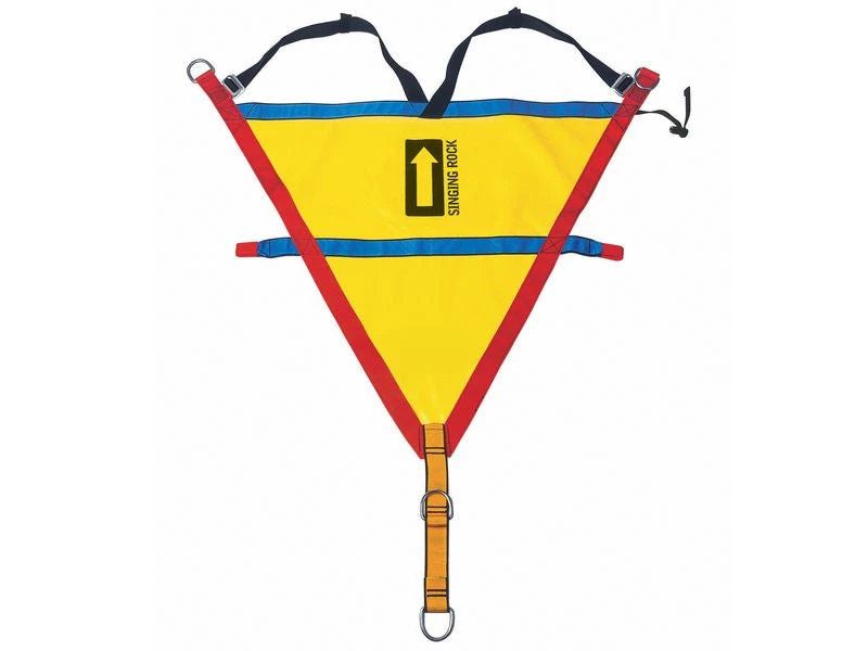 Evacuation triangle with shoulder straps for a person to rescue from a chair lift