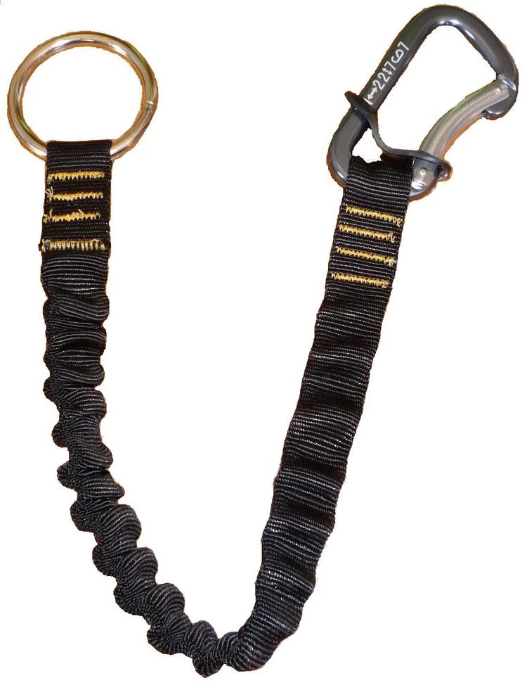 The Cowstail, consisting of tubular webbing bartacked to a stainless steel ring, stretches out to 38mm and is perfect for white water paddling.