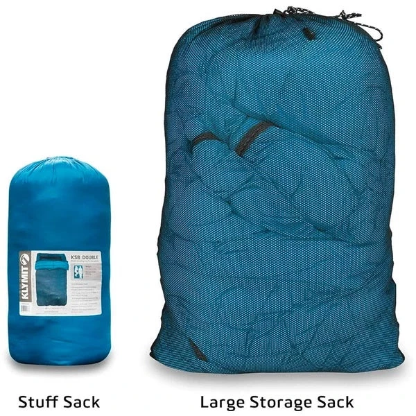 The Klymit KSB Double Down Sleeping Bag has plenty of room for two and thoughtfully designed for 3-season comfort. This sleeping bag is exceptionally warm, lightweight and packs down nice and easily.