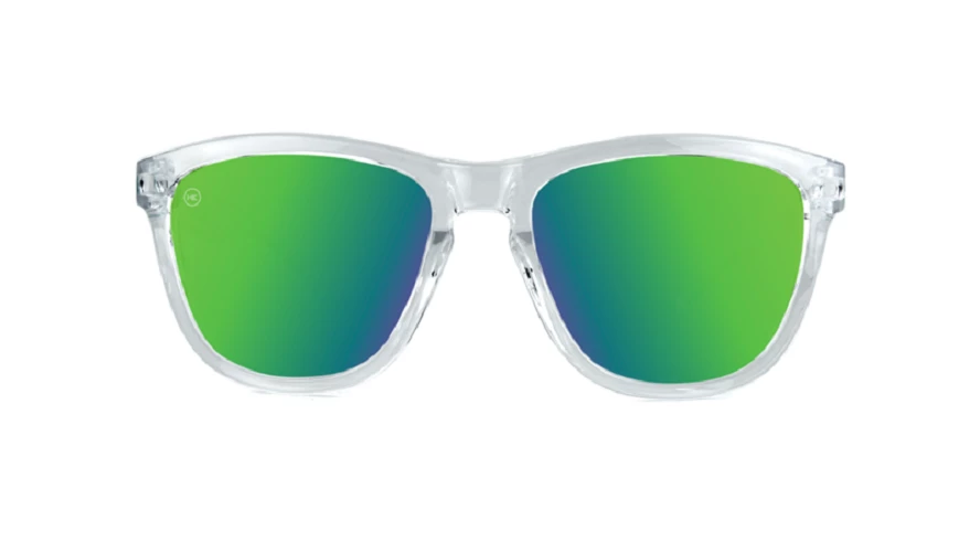 The Knockaround kids’ sunglasses are uniquely designed to please parents and kids. Parents prefer them because they provide full UV400 protection and because they will fit most kids for several years—that means you don’t need to buy a new pair with every growth spurt—and kids love them because they come in a wide range of cool colors, like the fun clear frames and green moonshine lenses on this pair of Kids Premiums.