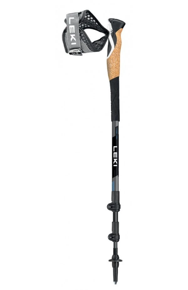 This sturdy three-section pole made from aluminum is equipped with the Cross Shark grip. The speed of the Shark system is combined with the support of a hiking grip with an ergonomic support surface. It´s ideal for fast hiking and combines the advantages of a trail running grip with those of a trekking grip. The wide strap, made of highly breathable mesh, encloses the hand securely and tightly to reduce stress on the hand muscles. A grip extension on the open-pored, imitation cork foam grip provides additional grasping options. The Cross Trail Lite TA makes a reliable companion for your next workout in the mountains!