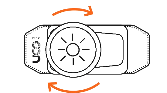 Unique, no “hard point” hinge design fits your head perfectly and allows the lamp to focus forward or downward towards the ground.