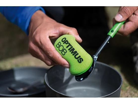 The Optimus Bob – The Outdoor Sponge is the perfect outdoor sponge. With a rough scrubber side and a soft polishing side you can cover all your pot cleaning bases. It’s also scratch free cleaning, and lightweight.