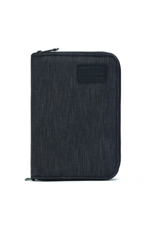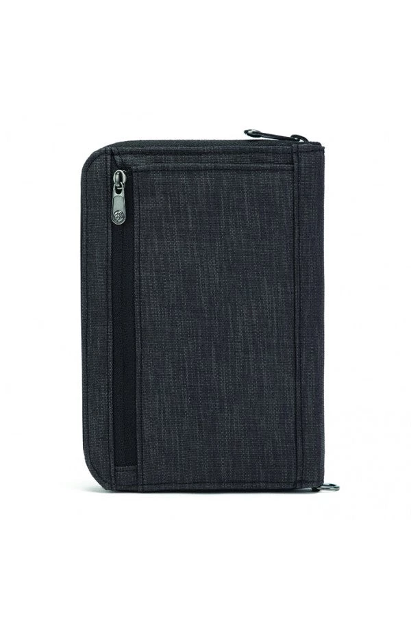 This Travel Organizer is made from RFID blocking material and has compartments for multiple currencies, space for a boarding pass and more.