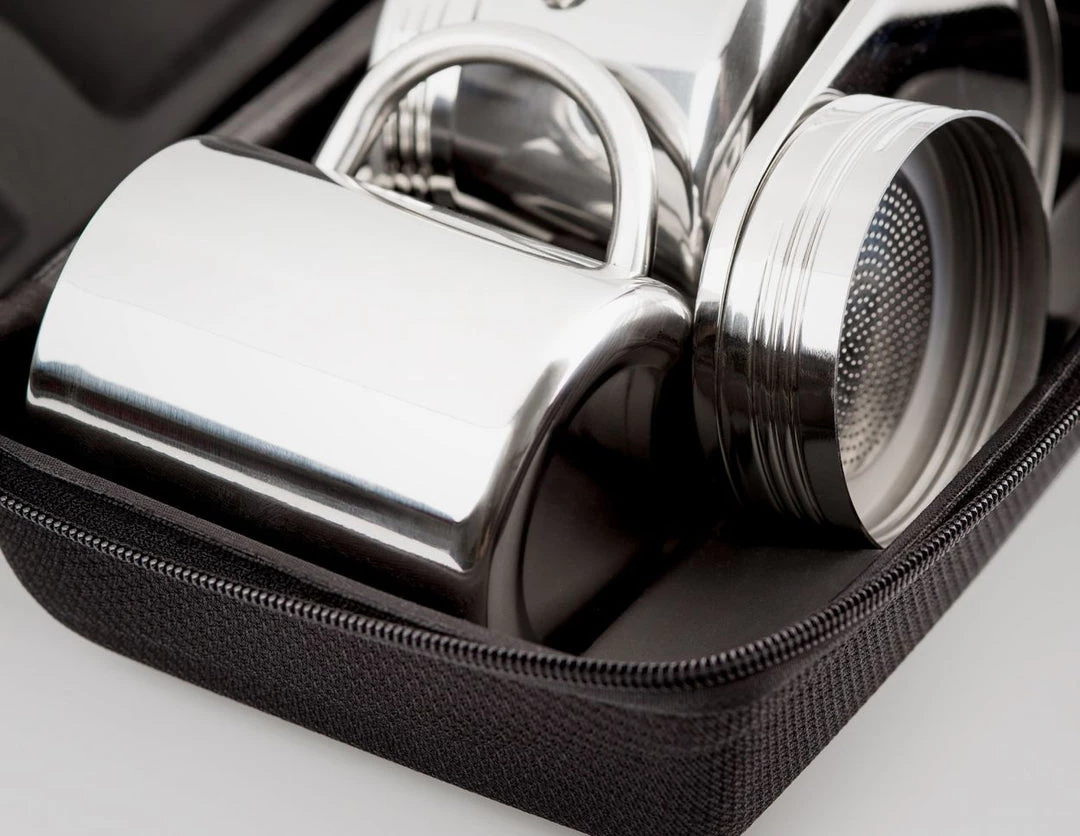 - Includes: Espresso Body, Double Wall Cup, Filter Funnel, Gasket, Spout Assembly, Foam Case