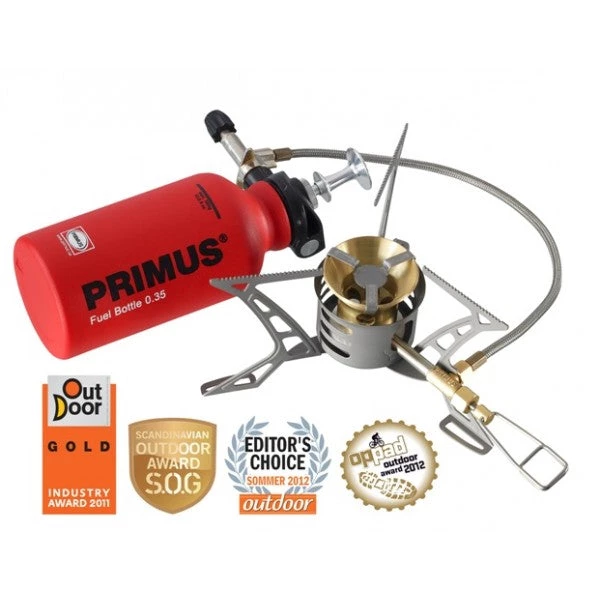ErgoPumpâ„¢, a multi-tool with a cleaning needle, a foldable windscreen, a heat reflector, a 0.35 l fuel bottle and a convenient and durable storage bag are included.