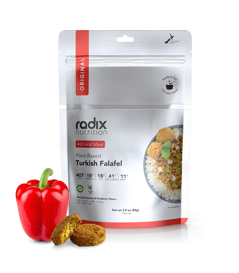 - Tomato [Includes Non-GMO Maize Starch 2.4%], Organic White Rice, Red Capsicum, Falafel (14%) [Fava Beans (60%), Chickpeas (30%), Onion, Parsley, Coriander, Garlic, Spices, Salt, Rapeseed Oil], Broccoli, Organic Olive Oil, Almonds, Mint, Garlic, Pea Protein Isolate, Organic Brown Rice Protein, Pink Himalayan Salt, Sweet Paprika, Rosemary, Black Pepper