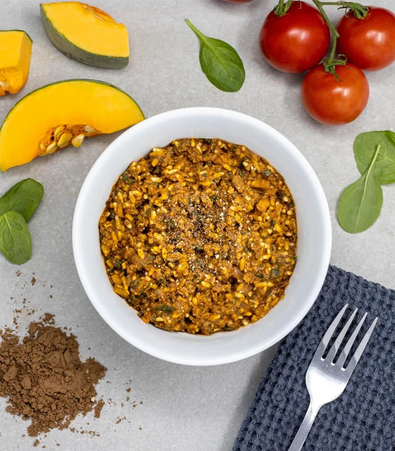 A nutritionally optimised meal to support energy levels and peak physical and mental function. Designed with over 30g of high-quality protein to support muscle balance and function while fuelling you for longer. This meal further incorporates a range of whole foods, including 3 servings of vegetables to provide plentiful micronutrients required to best support optimal health.