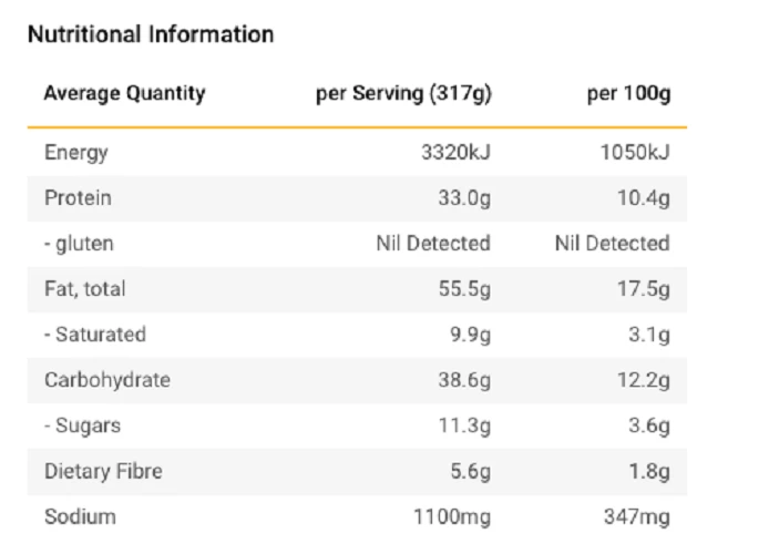 Refer to photos for nutritional information