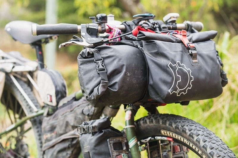 Drop bar users – The Harness works fine with drop bars; you are limited in the width of the main bag you mount in it, but can opt for a larger diameter dry bag.