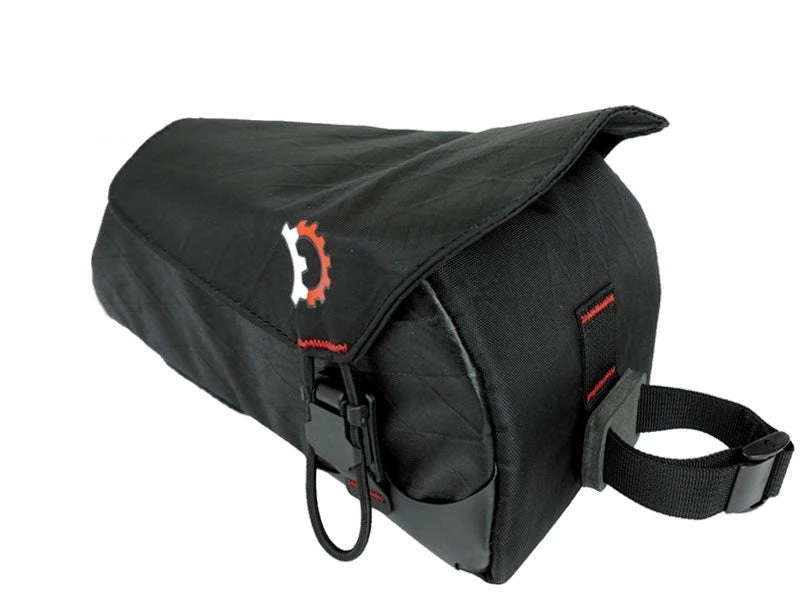 Please note – While the cover to this bag is designed to shed rain and spray, due to the large panel opening it is not a sealed bag or waterproof bag. Additionally, while the closure is secure – due to the flap style opening there is the possibility that small or loose objects can come out of the bag from rough trails or lying the bike on it’s side. We recommend small items like loose keys and gummy bears are put in a ziplock.