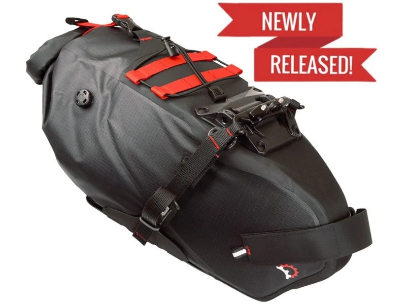 The Spinelock integrates user tested and approved features like a one-way air purge valve, rear light slots, loop and bungee deck and an external plastic bottom with a new patented attachment system. Stability was the driving element in the design process. If you want something you can pack and forget, the Spinelock is your seat bag.