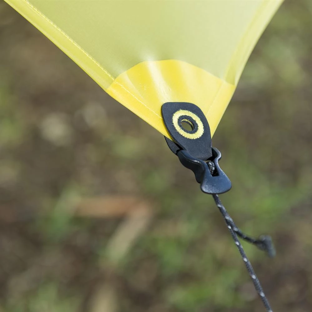 The Escapist is made from seam sealed waterproof 15D Ultra-Sil® Nano fabric, our 15 Denier Sil/PU coated 1,200mm waterhead rated Nylon. The eight Hypalon ® tie-out points will each hold the tip of a trekking pole and have cord adjuster and reflective guy lines pre-attached. These eight versatile points help the Escapist achieve a really wide variety of setup options and also attach easily to the Escapist Mesh Inners, available separately.
