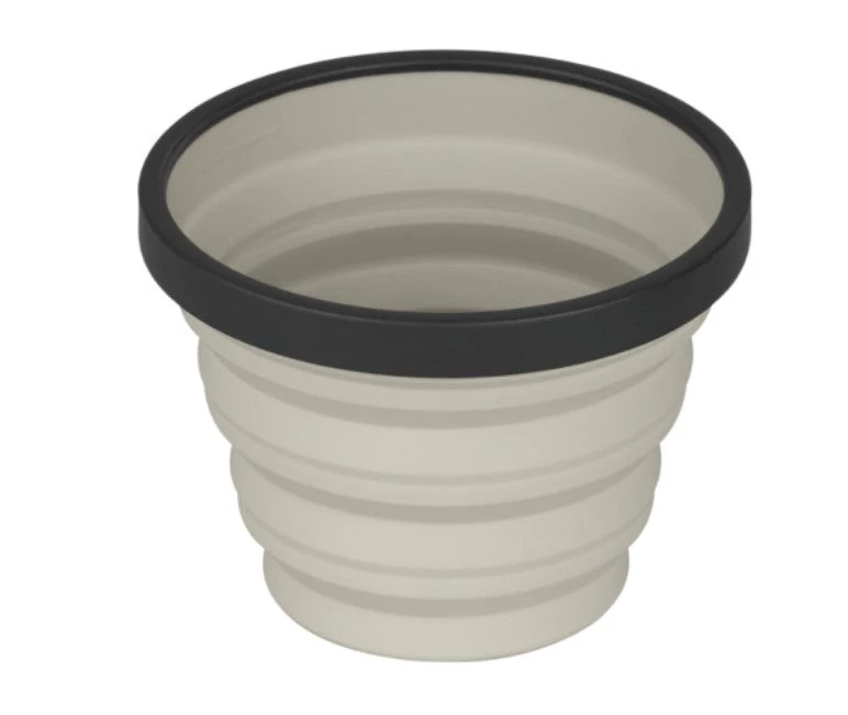 Sea to Summit X-Cup This collapsible hybrid is comprised of a rigid, cut-resistant base made of high temperature, food-grade nylon and walls made of food-grade flexible silicone, so it folds flat for compact packing. The base is tough enough to use as a chopping board. Part of the X-Series which also includes a plate and mug.