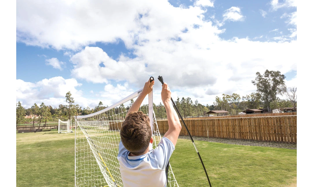 Get your practice going in under 2 minutes. The Quickster® is easy to setup and ultra-portable, yet durable and stable for youth and elite players alike. The unique Tension-Tite poles create a sturdy frame, while the easy velcro net attachments and steel ground stakes ensure the net will stay put. Carry bag is included for easy, compact storage.