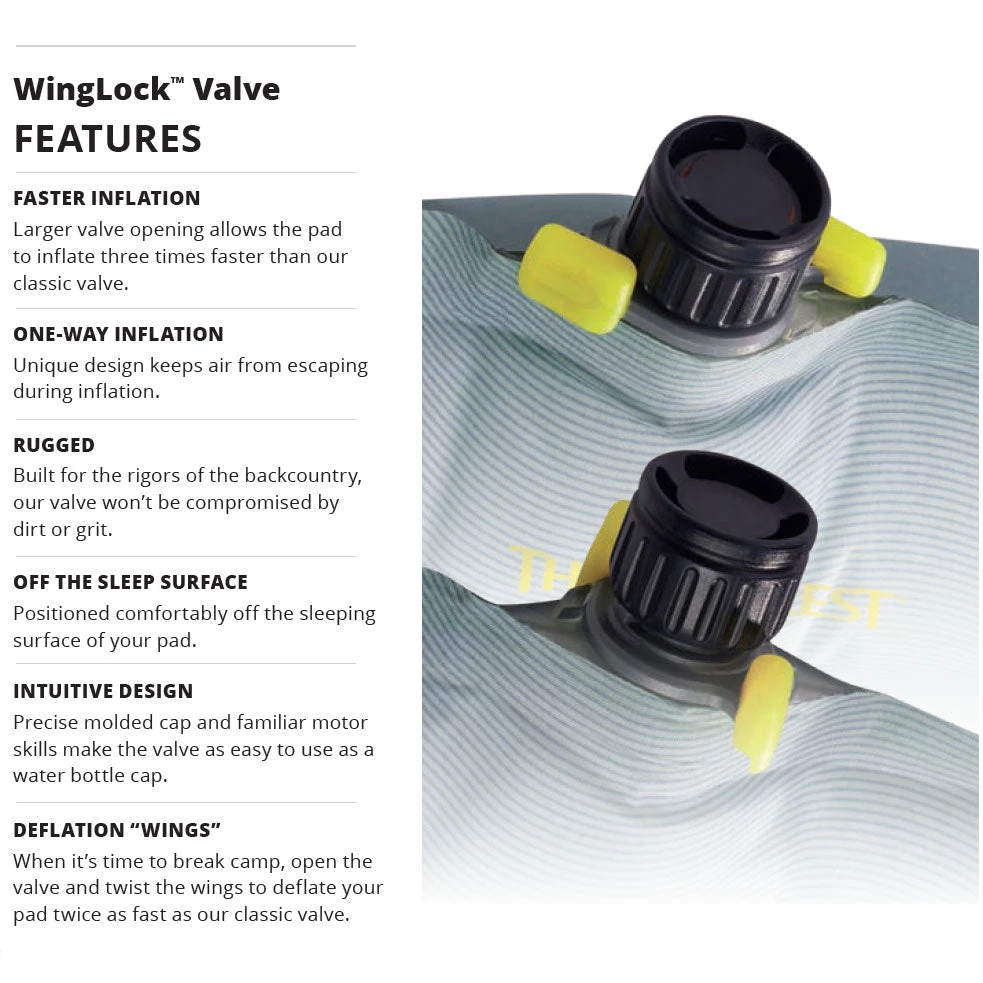 WingLock Valve: This intuitive and dependable valve maximizes air flow for easier inflation and quicker deflation. Wings toggle for one-way inflation to save breath.