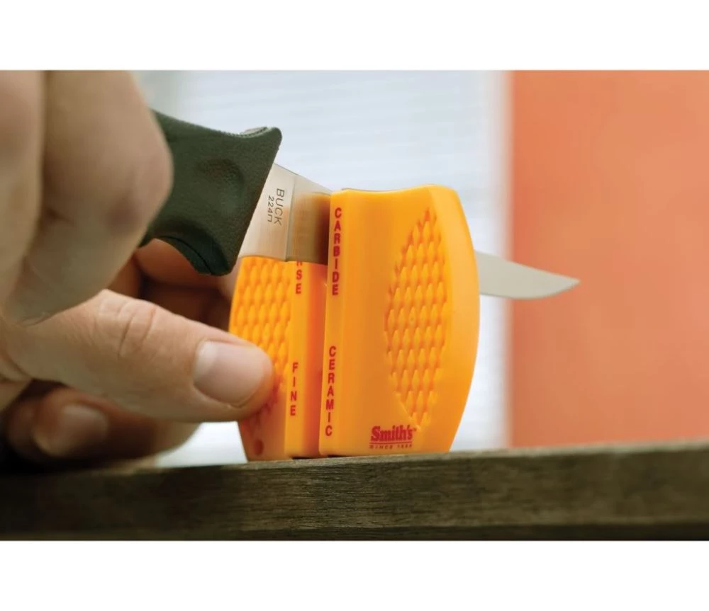 Smith’s 2-Step Knife Sharpener features two tungsten carbide blades with pre-set angles to ensure the perfect edge every time. Three or four strokes through the carbide sharpening slots will restore the edge on a very dull knife. The two crossed ceramic rods also have pre-set angles and provide a smooth finished edge to already sharp knives. It is lightweight, portable, comes with a lanyard hole and has non-slip rubber feet for added safety. Excellent for use on all types of knives, especially filet knives.